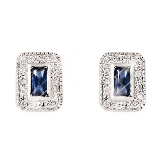 Tipperary Silver Stud Earrings Sapphire Centre White Surround