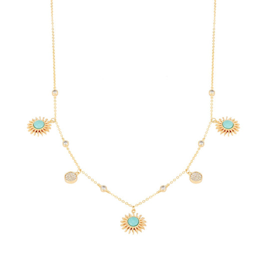 Tipperary Soleil Turquoise Sun Charms Necklace Gold