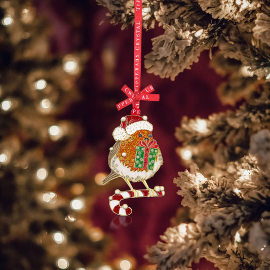 Tipperary Sparkle Robin with Gift Christmas Decoration