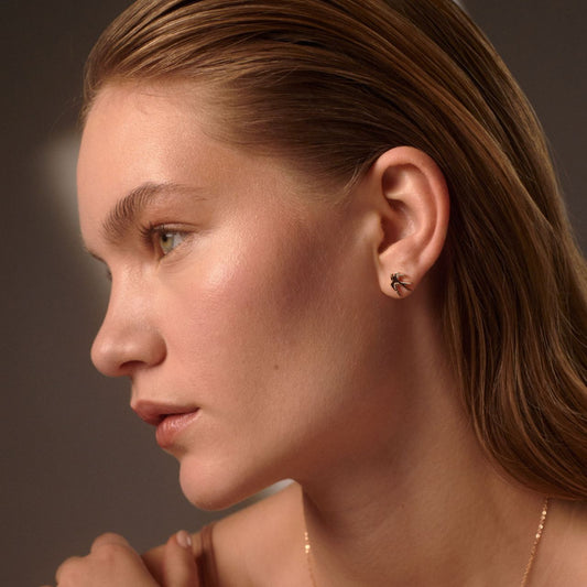 Tipperary Swallow Stud Earrings Black Inset - Gold